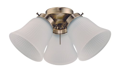 - Three-light cluster light kit with Antique Brass finish and frosted ribbed-glass shades; saves energy and provides a stylish accent to a new or existing ceiling fan