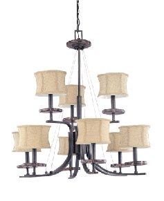 9 Light 2 Tier Chandelier - Ledgestone / Fabric Shades - Nuvo Lighting 60-1443 Review