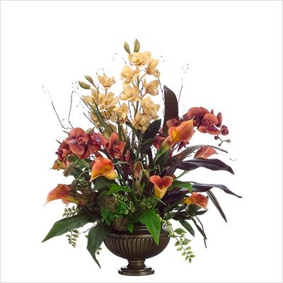 Orchids and Calla Lilies in Urn Faux Flowers Feature